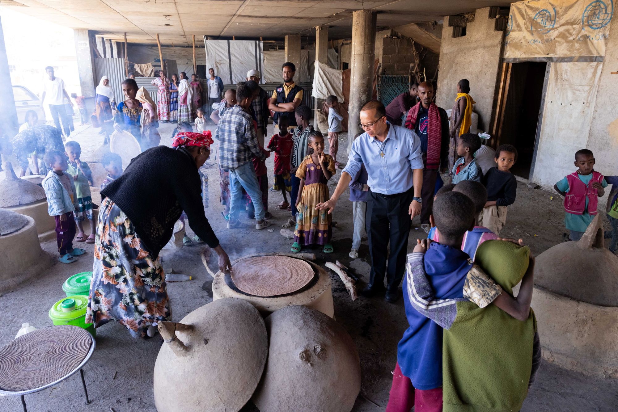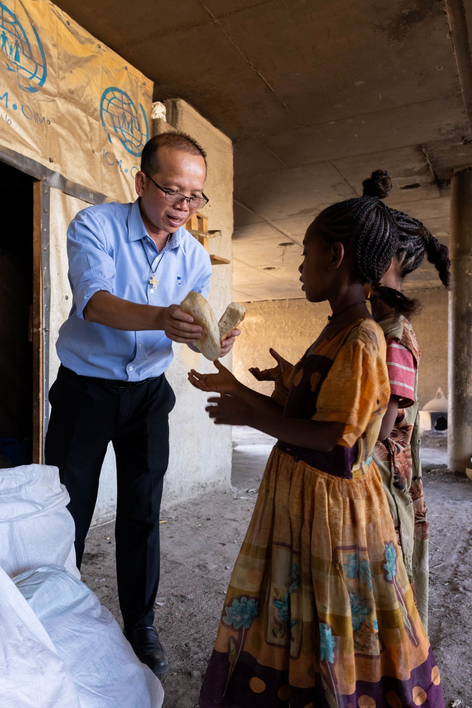 Die Ankunft in Adwa? Härter als erwartet. Erst kam die Corona-Pandemie, die auch in Äthiopien das Leben zum Erliegen brachte, und bald folgte der Krieg: Regierungstruppen, verbündet mit dem Nachbarland Eritrea, gegen die Miliz der abgesetzten Regionalregierung. Die vom Rest der Welt kaum wahrgenommenen Folgen – millionenfaches Leid, Vertreibung, eine von der Zentralregierung durch Nahrungsboykott hervorgerufene Hungersnot und mindestens eine halbe Million Tote. Father Luan wies alle Angebote zurück, als Ausländer ausgeflogen zu werden, und blieb an der Seite der ihm Anvertrauten. Als die Soldaten auf Adwa vorrückten, vergrub er seinen Pass, rief seine Schwester in Vietnam an und verabschiedete sich von ihr. Für immer, wie er dachte. Father Luan nahm den Tabernakel, scharte jene, die nicht geflohen waren, um sich, und stieg mit ihnen in einen der Keller der Werkstätten. Dort beteten sie und warteten. Bis Regierungssoldaten vor ihnen standen. „Warum seid ihr geblieben, während alle anderen davonliefen?“, fragten sie verwundert den Priester mit vorgehaltenem Gewehr. „Aus irgendeinem Grund kannten sie die Salesianer, hatten in ihrer Heimatregion mit unserem Orden gute Erfahrungen gemacht“, erinnert sich Father Luan. „Sie fragten: ,Don Bosco, seid ihr das?‘ Als ich bejahte, ließen sie uns in Ruhe.“