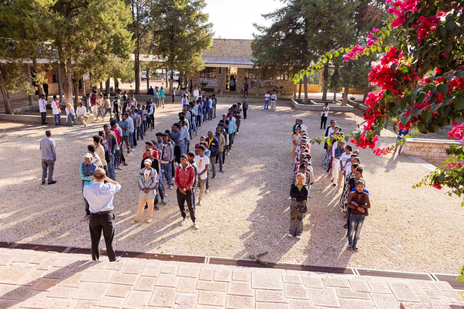 Schließlich hält Father Luan vor einem halbfertigen Rohbau. Rauch steigt auf, Familien mit Kindern umringen ihn. Es sind Hunderte von Vertriebenen aus dem Westen von Tigray. Sie alle hätten laut dem Friedensabkommen, das im November 2022 den Krieg offiziell beendete, längst in ihre Dörfer zurückkehren dürfen. Doch in der Realität zeigt sich, was die Versprechen von Politikern wert sind. So kauern die Frauen mit ihren Kindern weiter in ihren selbstgezimmerten Verschlägen im Inneren des Rohbaus. Father Luan bewahrt sie davor, darin zu verhungern. „Wir müssten viel mehr für sie tun“, sagt er später fast schon vorwurfsvoll, „man soll den Menschen ja nicht den Fisch liefern, sondern ihnen das Fischen beibringen.“ Aber die Not ist ein Meer, das selbst ihn zu verschlingen droht.